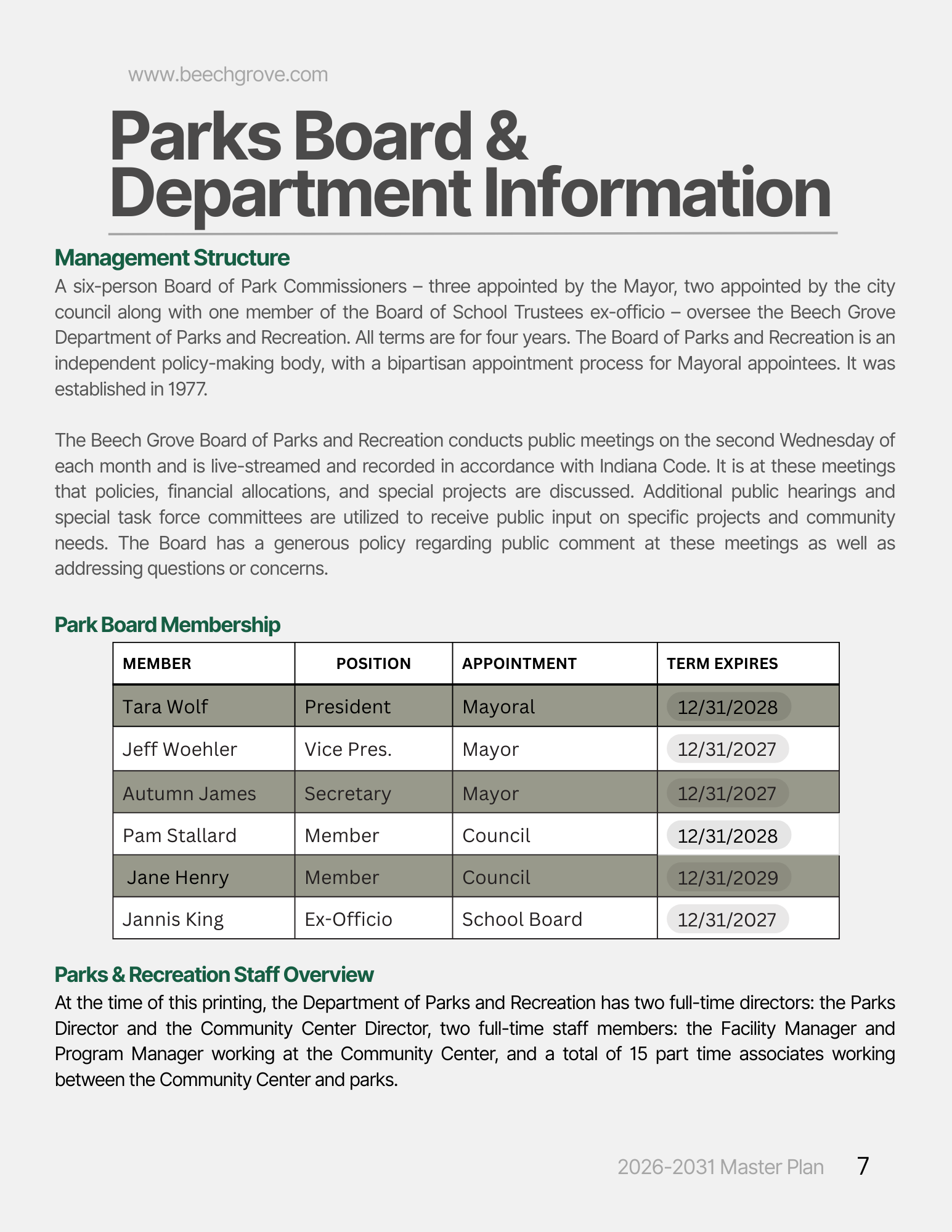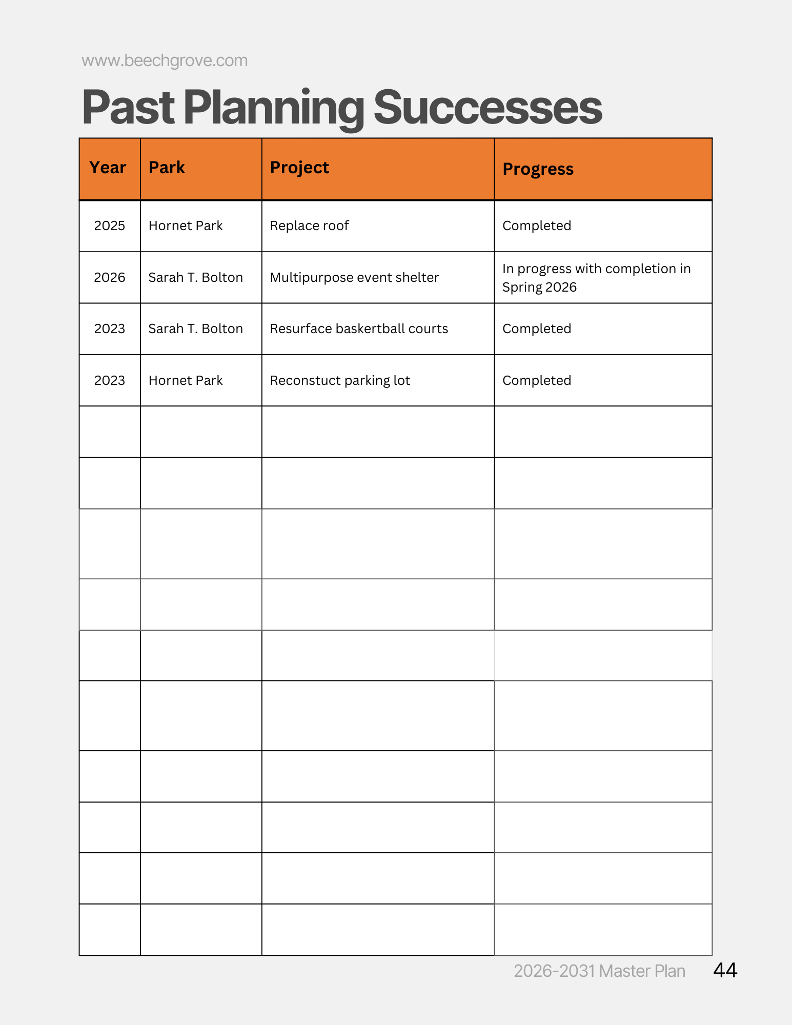 For any inquiries regarding the plan, please contact parksboard@beechgrove.com.